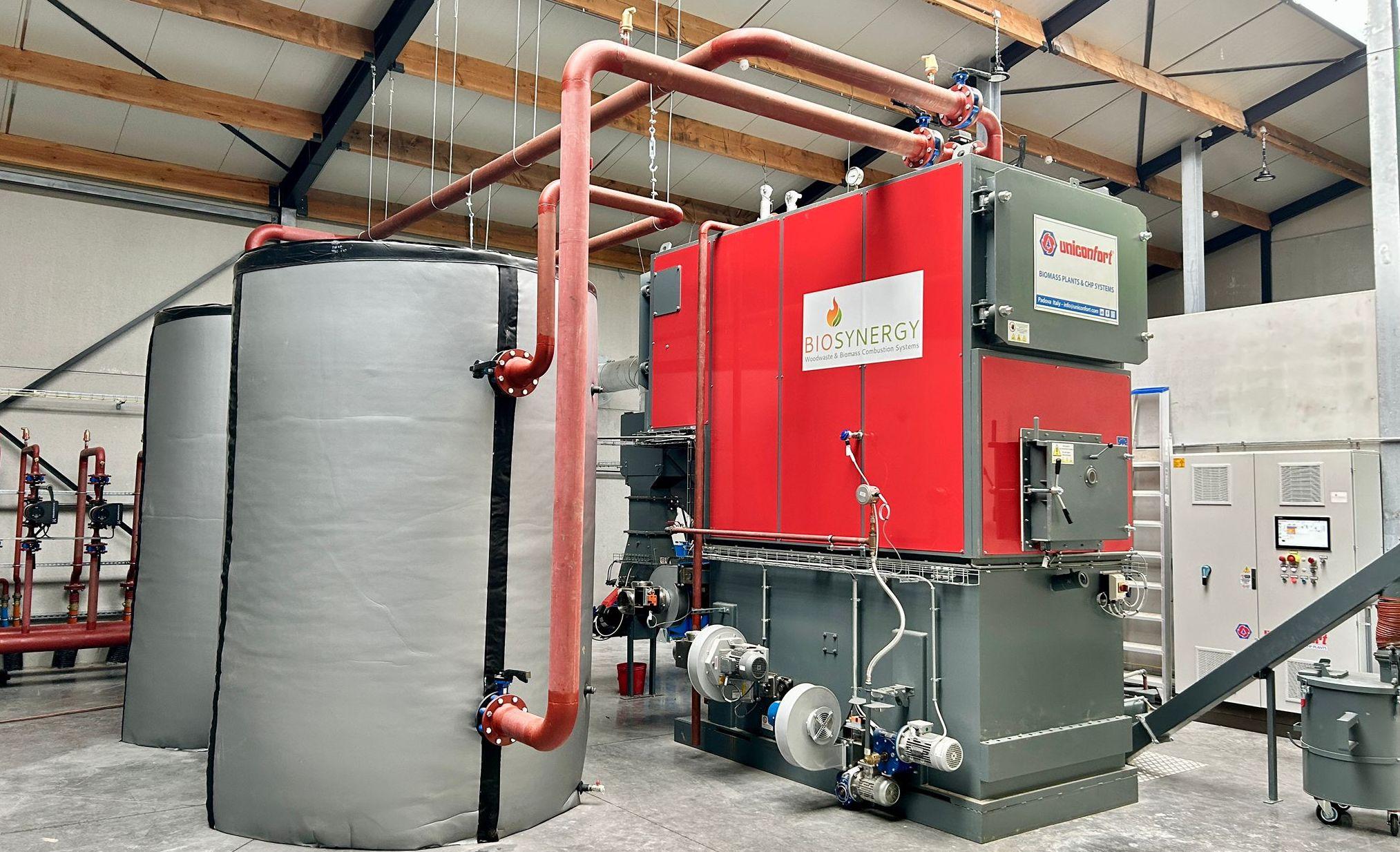 Hogerhuis a opté pour une chaudière à biomasse de BIOSYNERGY. L'entreprise établie à Merelbeke transforme ainsi 200 m³ de déchets de bois en chaleur.